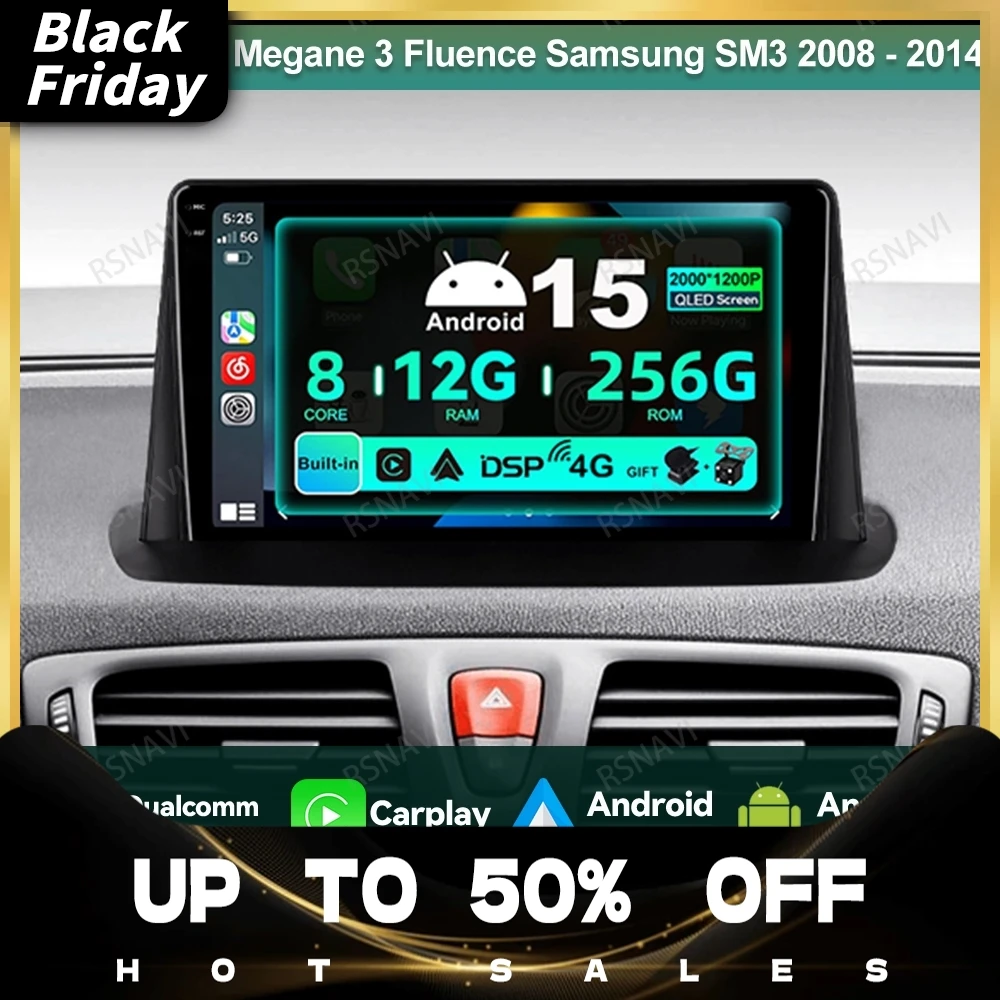 Autoradio Android 15 pour Renault Megane 3 RS Fluence Samsung SM3 2008 2010 2014 GPS Carplay lecteur...