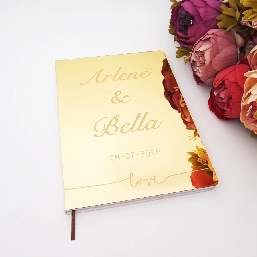 Livre d'Or en Acrylique Gravé avec Miroir, Signature de Mari...
