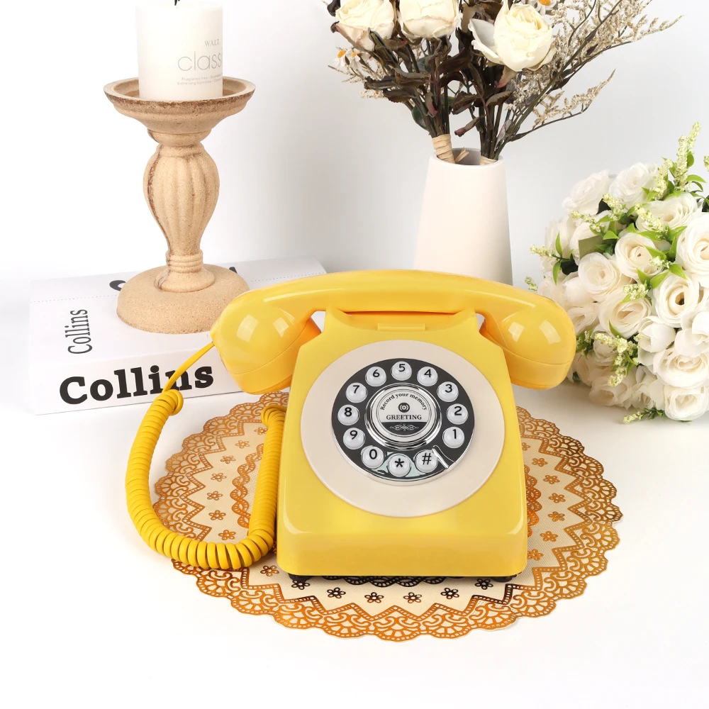 Livre de messages Audio Antique de couleur jaune, téléphone Vintage, mariage Antique p...