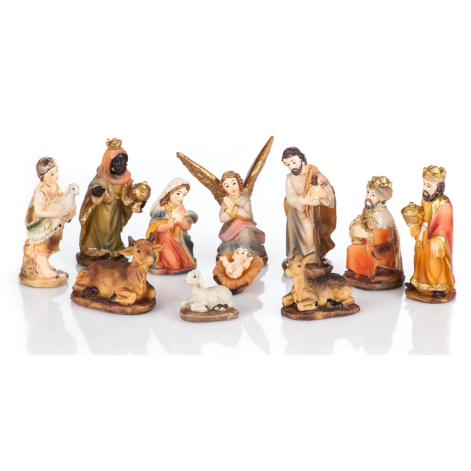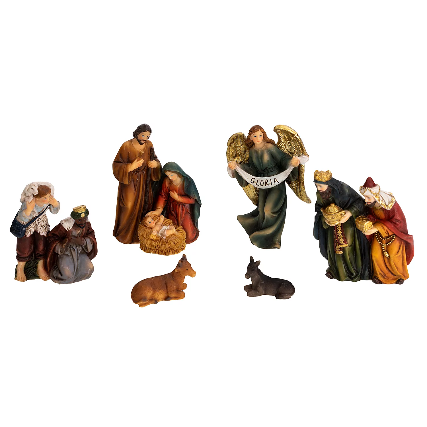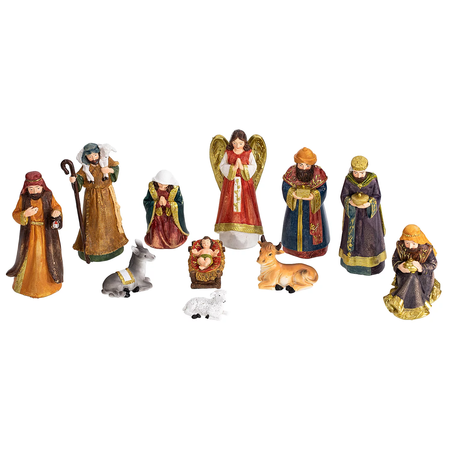 Santons en polyrésine, dimensions : 2,5-10 cm, contenu : Marie, Joseph, l'enfant Jésus...