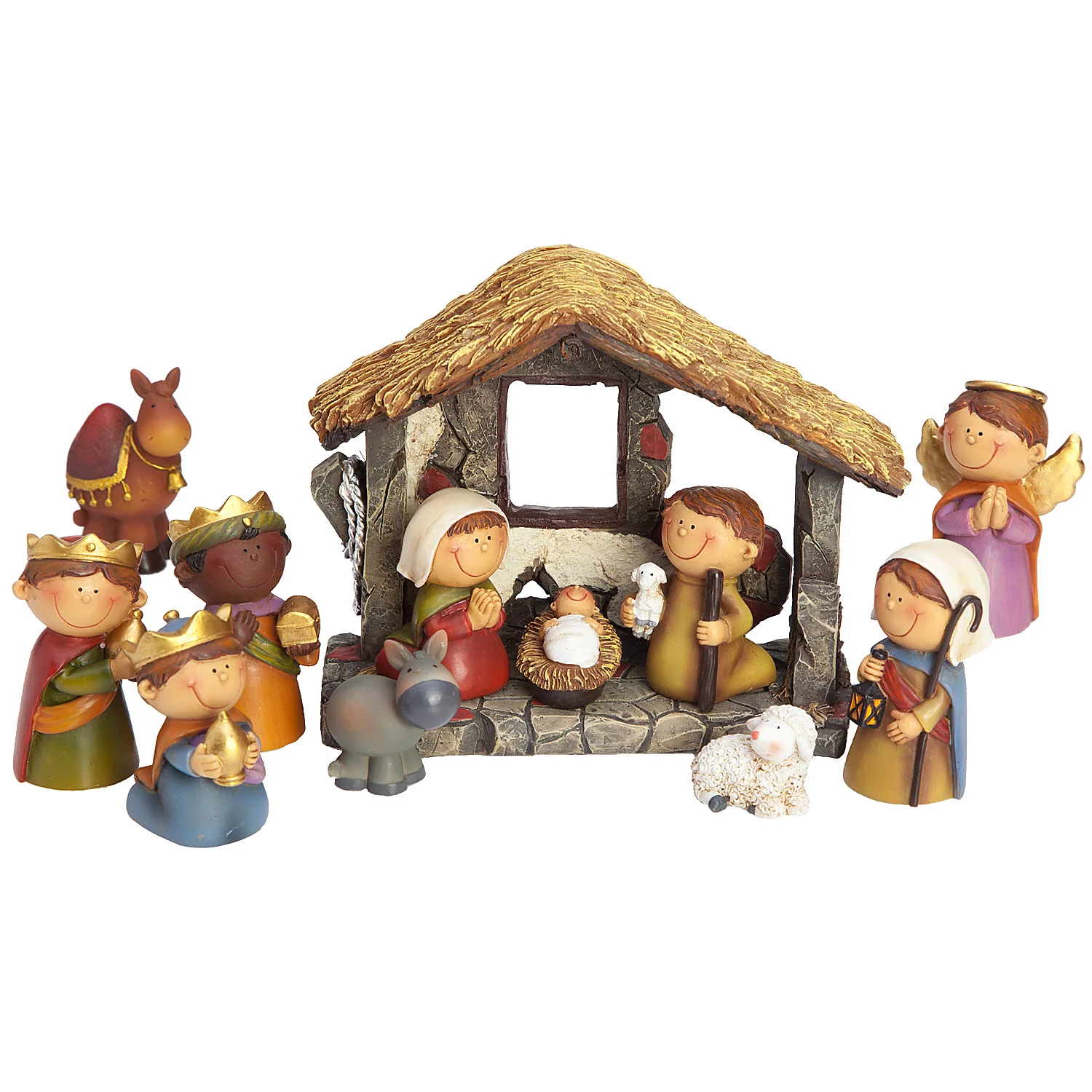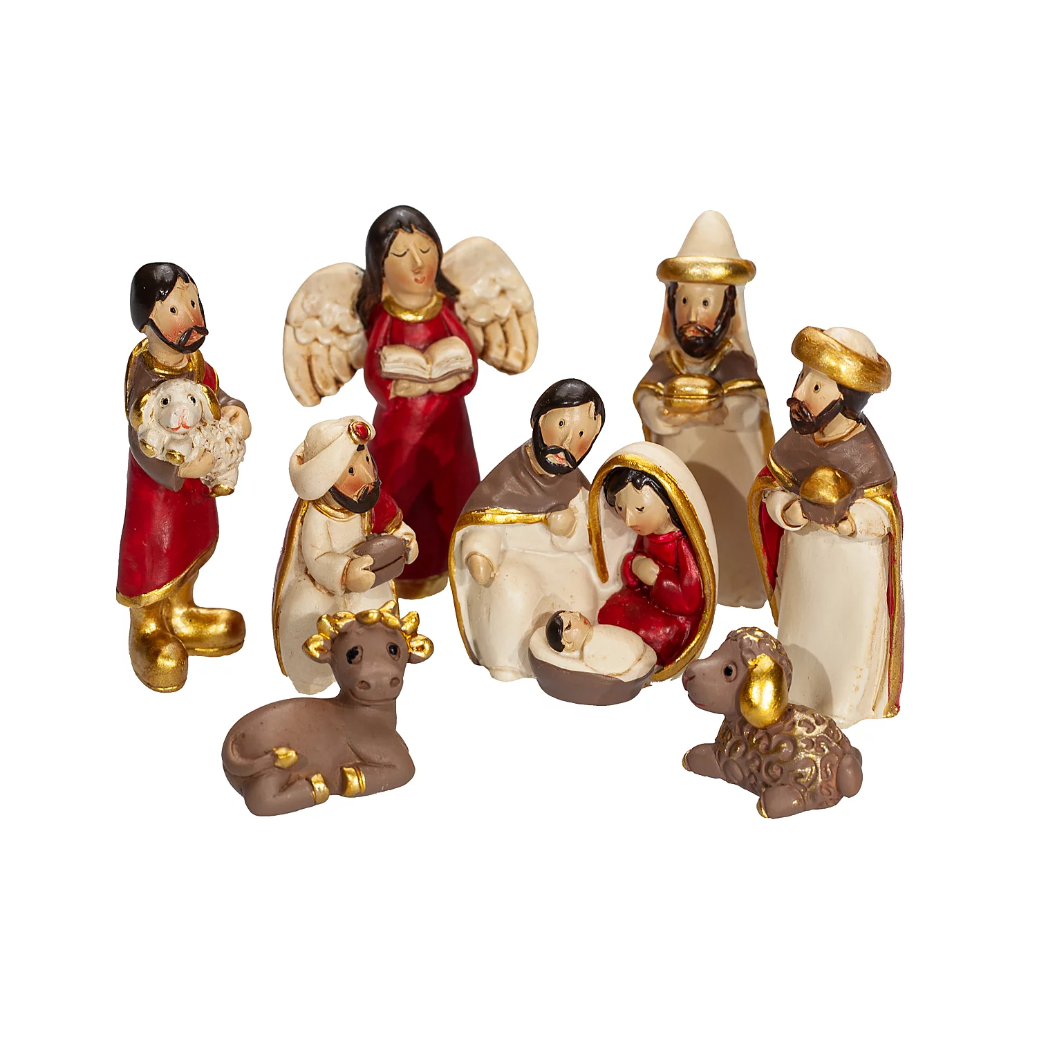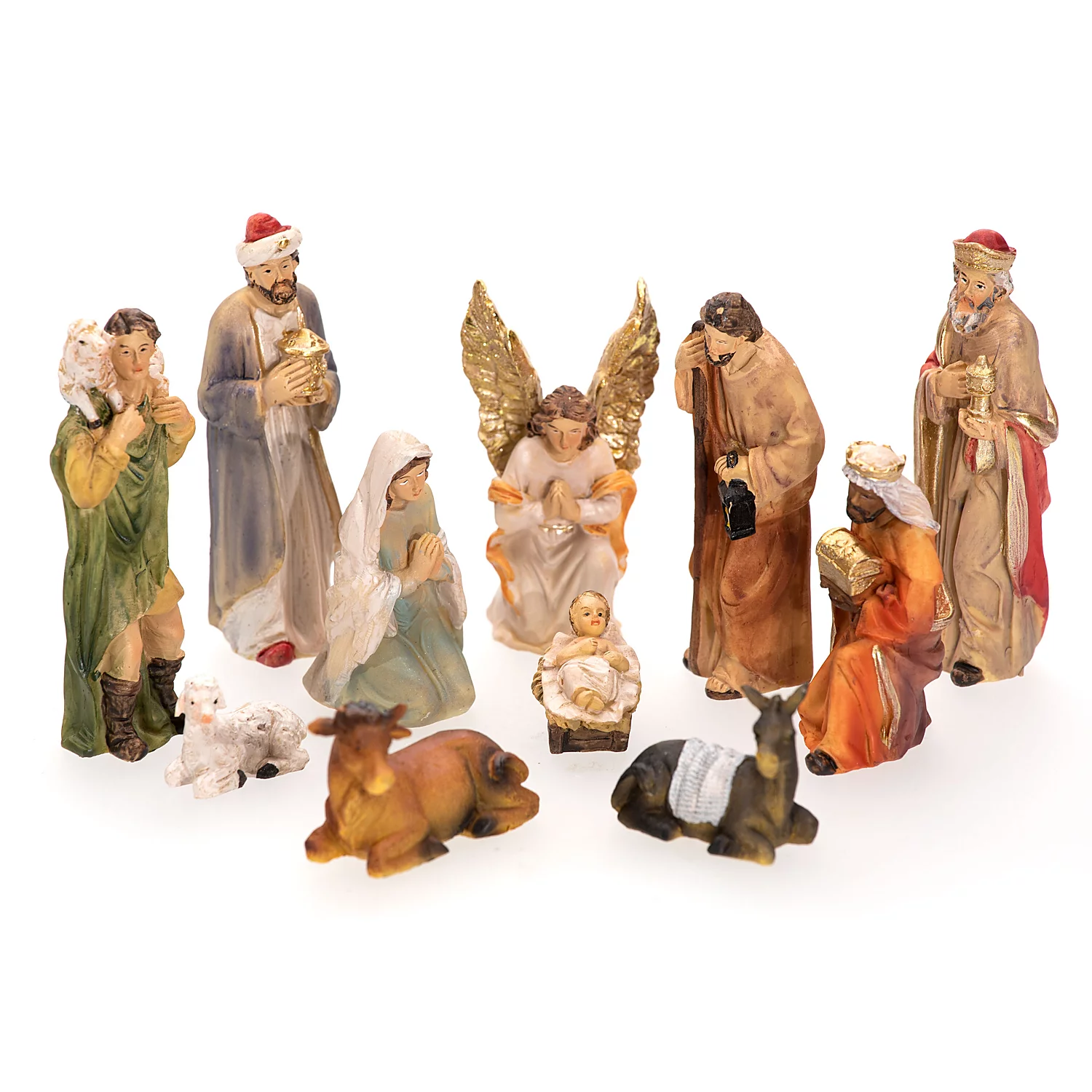 Santons en polyrésine, dimensions : 2,5-10 cm, contenu : Marie, Joseph, l'enfant Jésus...
