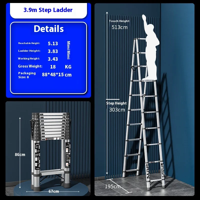 Échelle télescopique en acier inoxydable, échelle en zigzag, échelle pli...