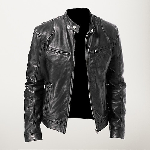 Homme Simili Cuir Veste moto Blouson Moto Chaud Pluie Etanche Veste...