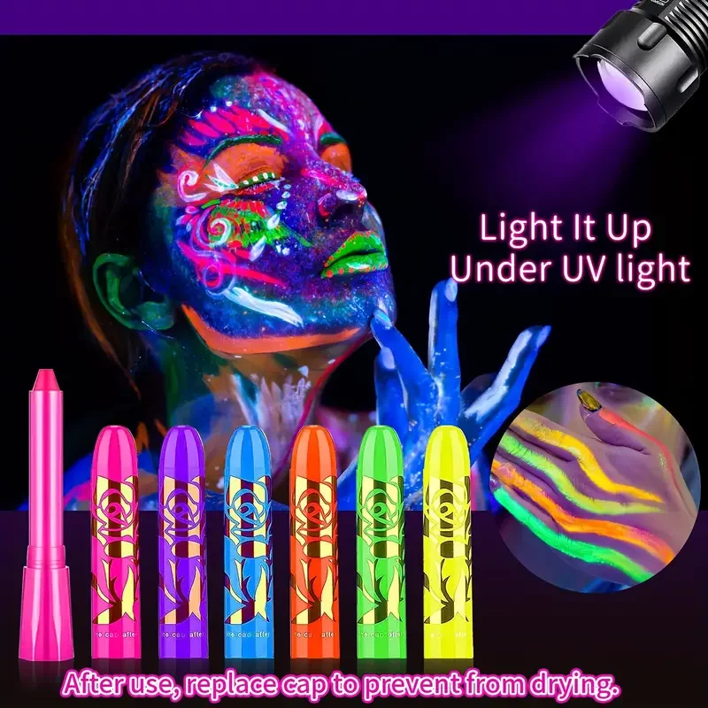 Kit de peinture pour le visage au néon UV 6 pièces, brille dans la nuit sous les lumi&...