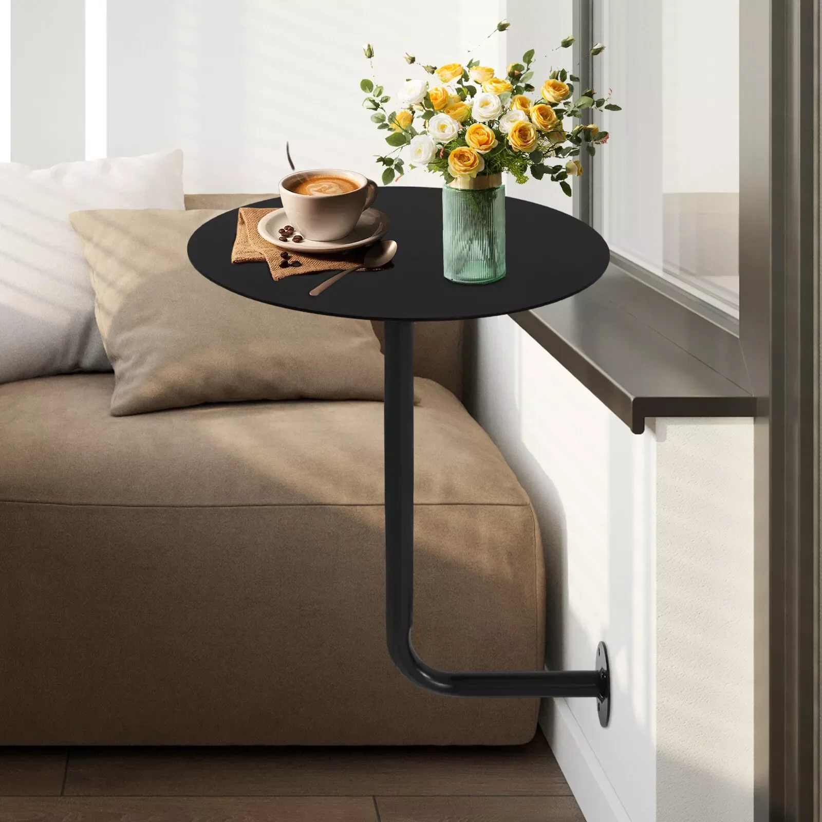 Table de bar ronde noire en forme de L fixée au mur, table p...