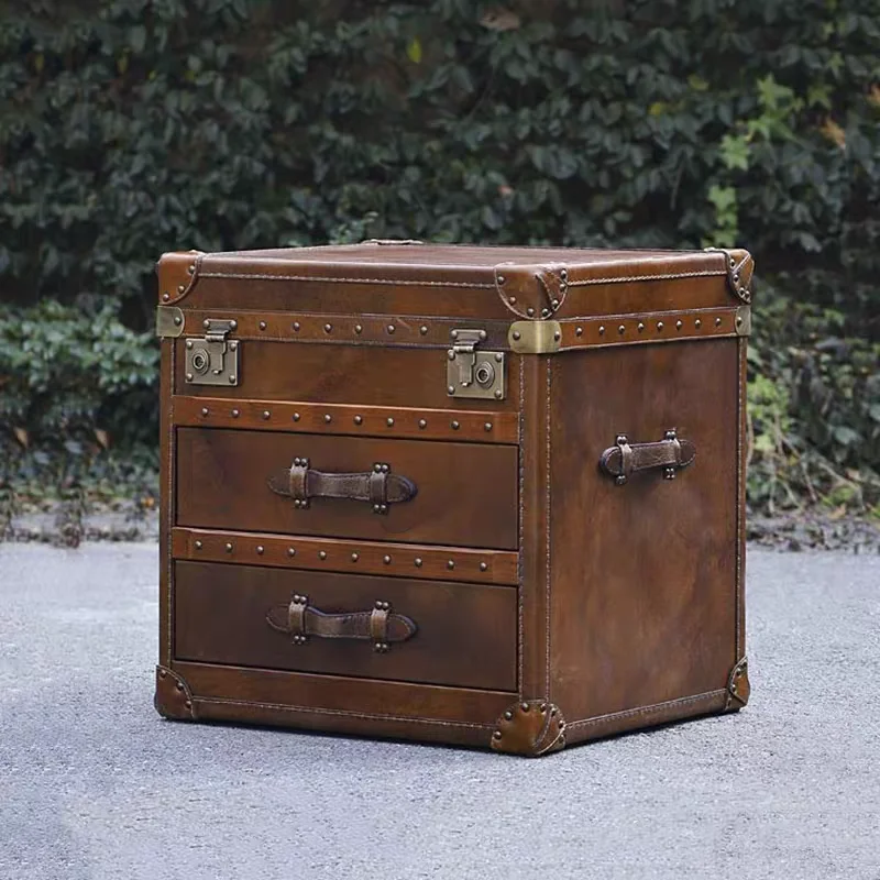 Table basse en cuir de vache de style rétro français, table de rangement en boît...