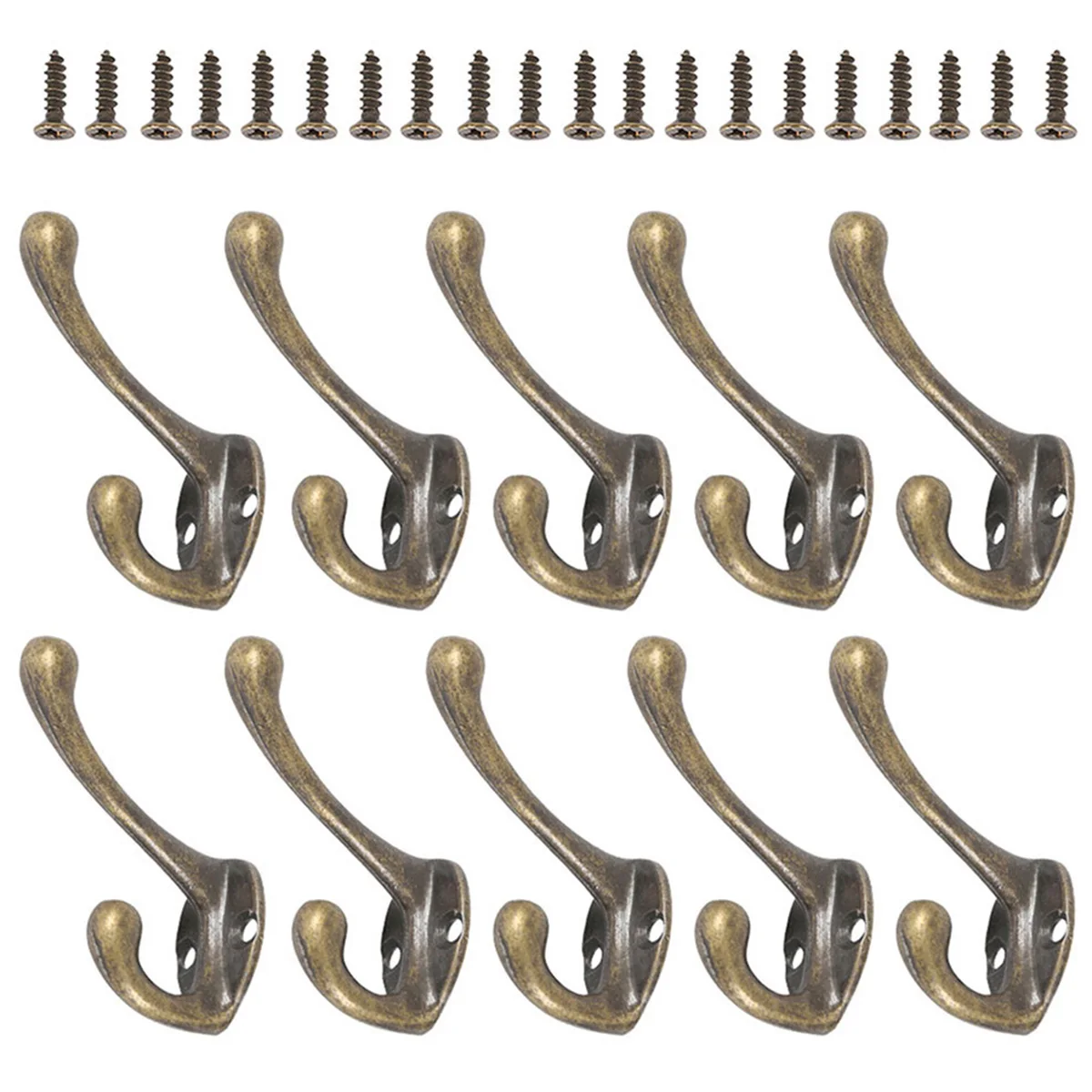 10/20 pièces patères salle de bain mural double porte-manteau Bronze Vintage cintre se...
