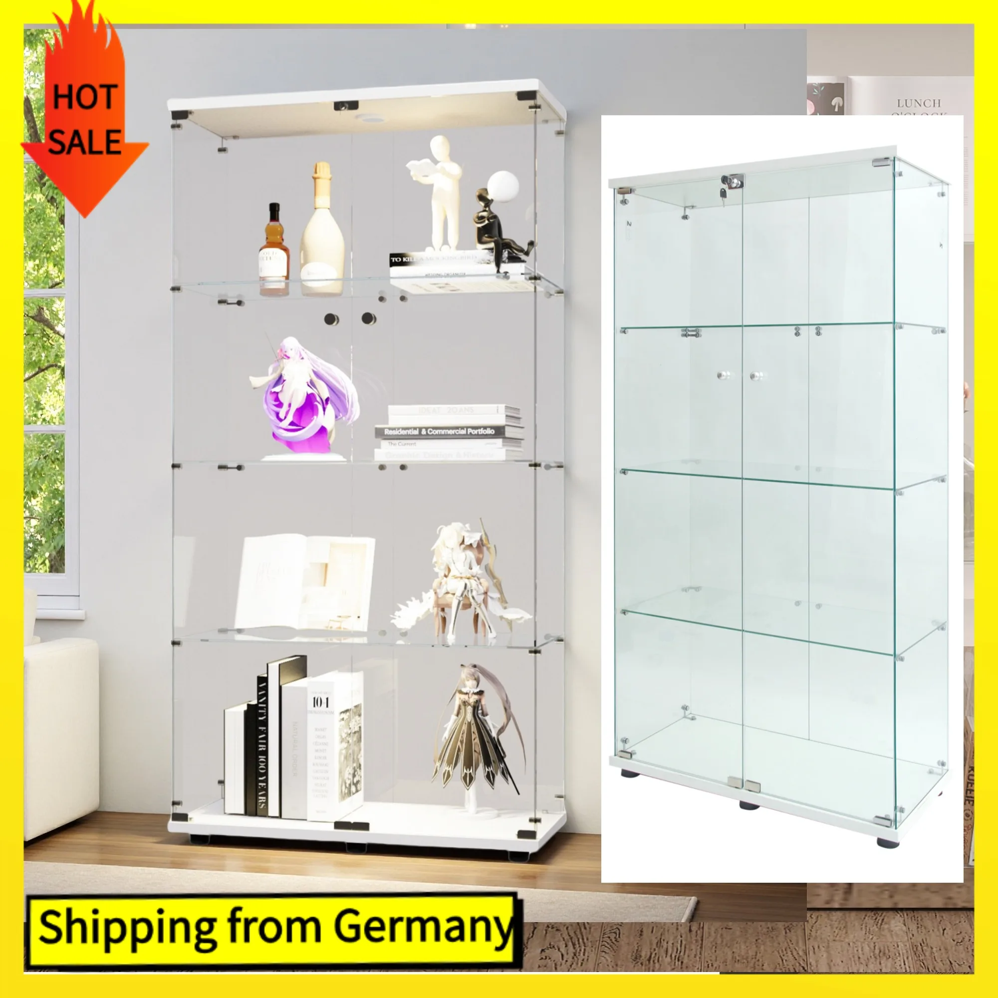 Comanlai Vitrine LED moderne, vitrine en verre à 4 ét...