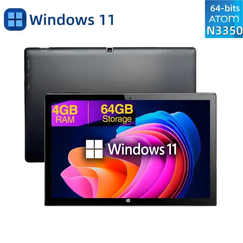 Tablette Windows 11 10,1 POUCES 4 Go de RAM 64 Go de ROM 64 bits Intel Atom N3350 Quad Core Dual Cam...