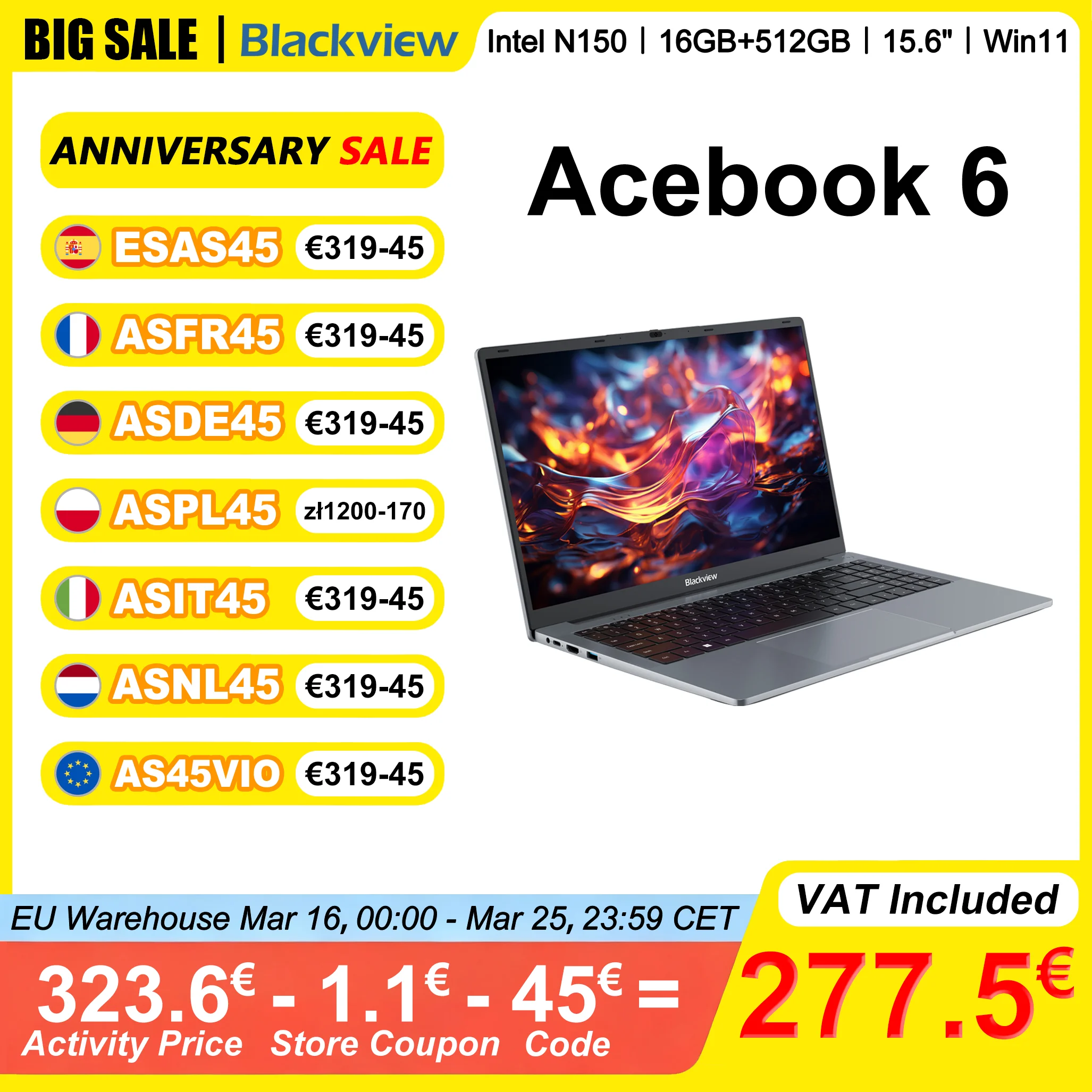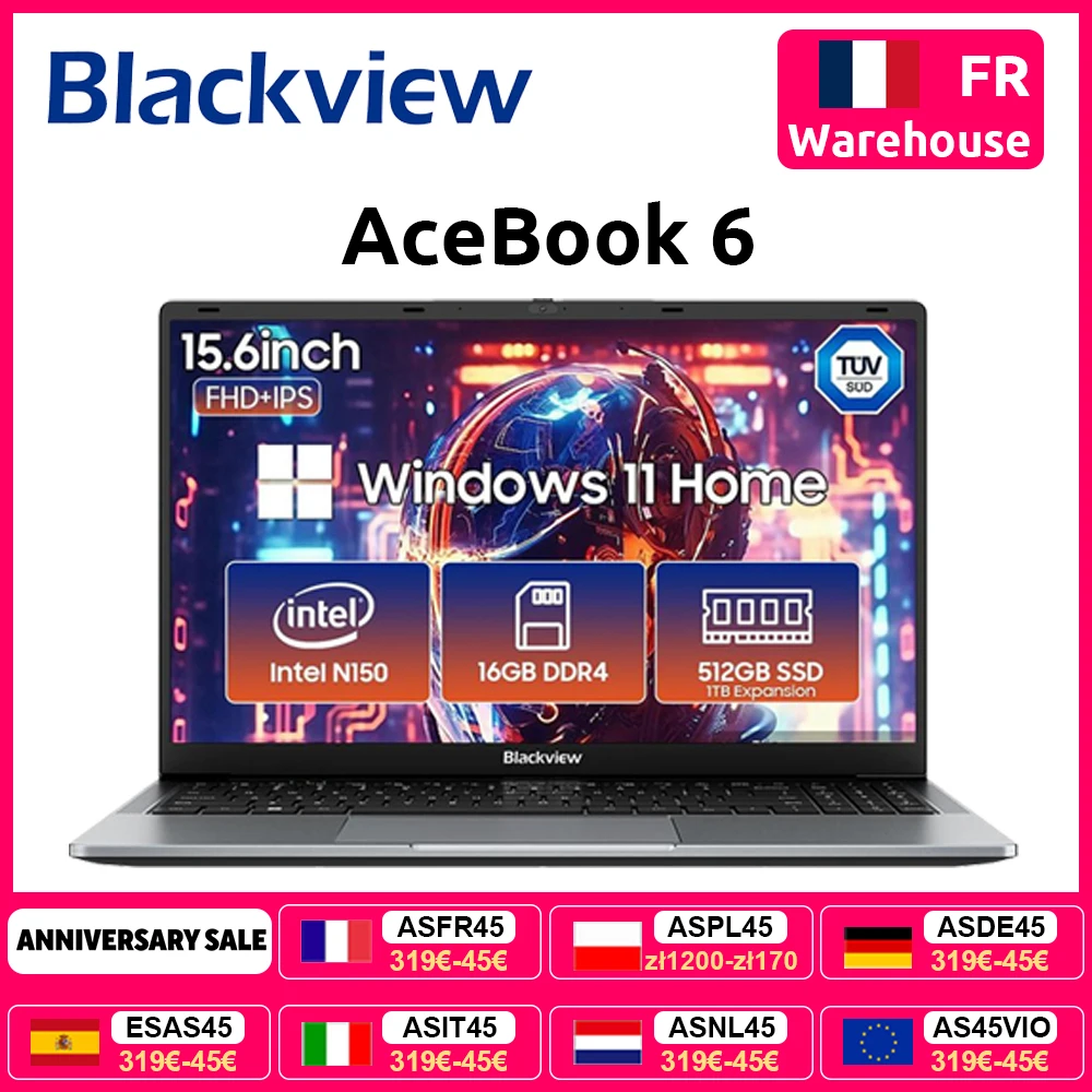 Ordinateur portable Blackview AceBook 6 15,6" FHD IPS Intel N150 16 Go de RAM 512 Go SSD Window...