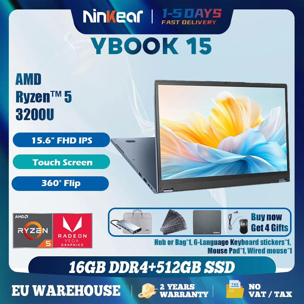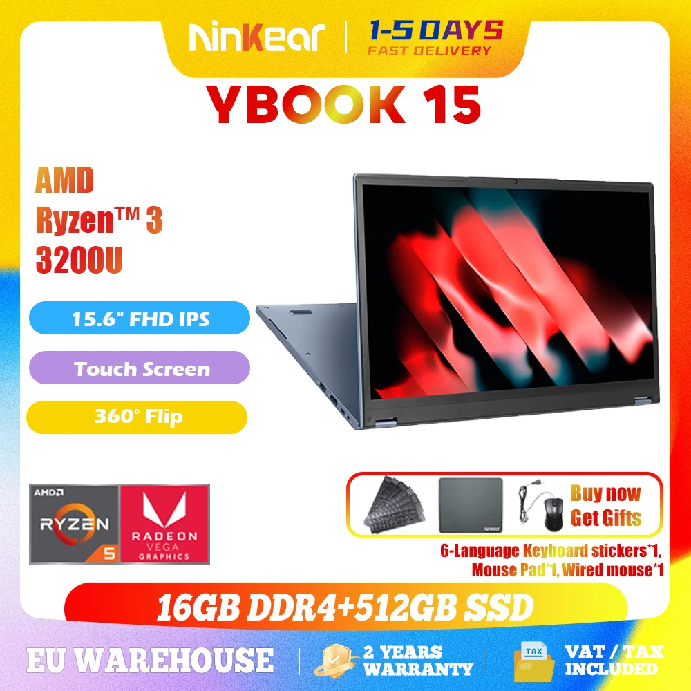 Ordinateur portable Ninkear 2 en 1 YBOOK 15 Le meilleur cadeau de Noël AMD ™ Ryzen 3 3200...