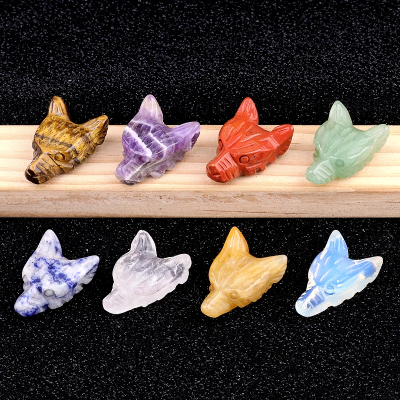 2025 pierre de cristal animaux ornement énergie sculptée tête de loup amé...