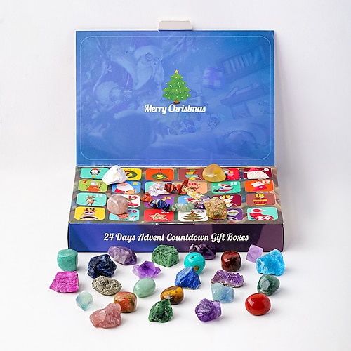 Calendrier de l'Avent de Noël 24 jours, boîte-cadeau minéral en cristal naturel, p...