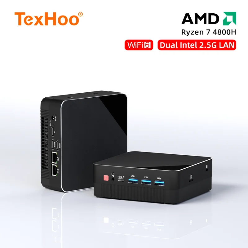 TexHoo Mini PC ordinateur de jeu AMD Ryzen7 4800H poche double HD-MI LAN WIFI6 NUC bureau DDR4 NVMe ...