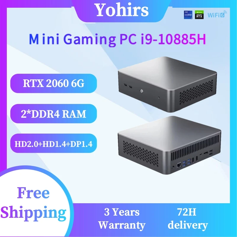 Mini PC de jeu 10e génération I9 10885H I7 10850H RTX2060 6G 2xDDR4 double M.2 SSD ord...