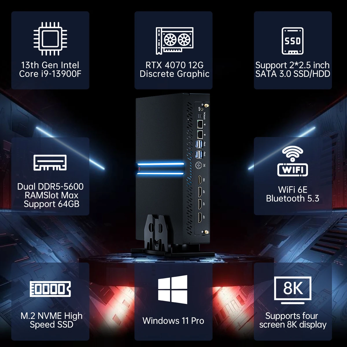 MSECORE MV300 Intel core i9-13900F RTX4070 carte dédiée Mini PC de jeu Windows 11 ordi...