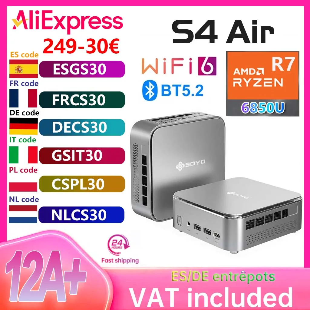 SOYO S4 Air Mini PC AMD R7-6850U 8C/16T NUCBOX 16GBDDR5 4800MHz 512...