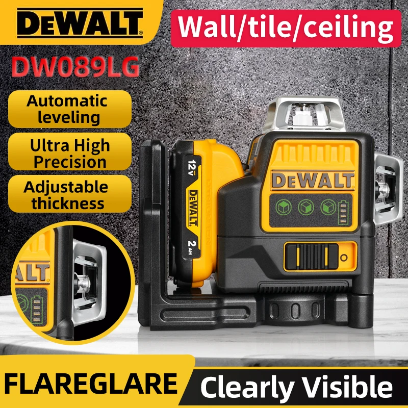 Dewalt-Niveau laser professionnel 12 lignes DW089LG, ligne de faisceau vert, 12V, batterie au lithiu...