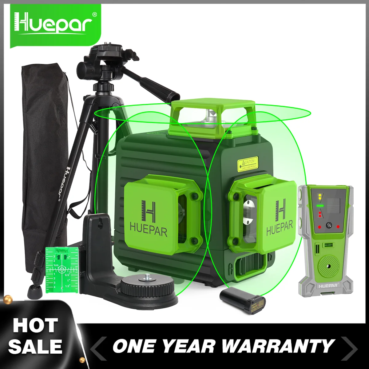 Huepar-Niveau laser à faisceau vert 3D, 12 lignes, Osram, ensemble d'outils de niveau laser &...