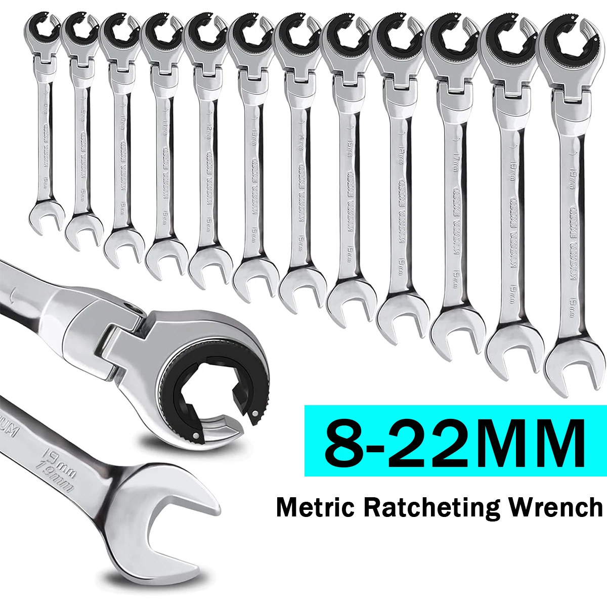 Combinaison de clé à cliquet à tête flexible ouverte métrique 8-22...