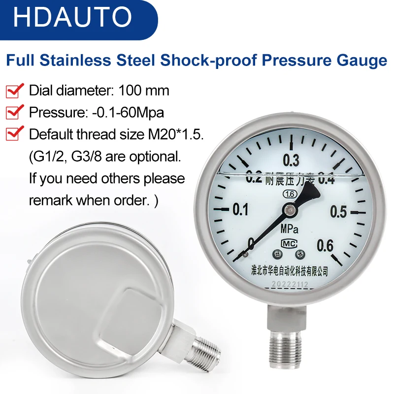Manomètre en acier inoxydable résistant aux chocs, pr...