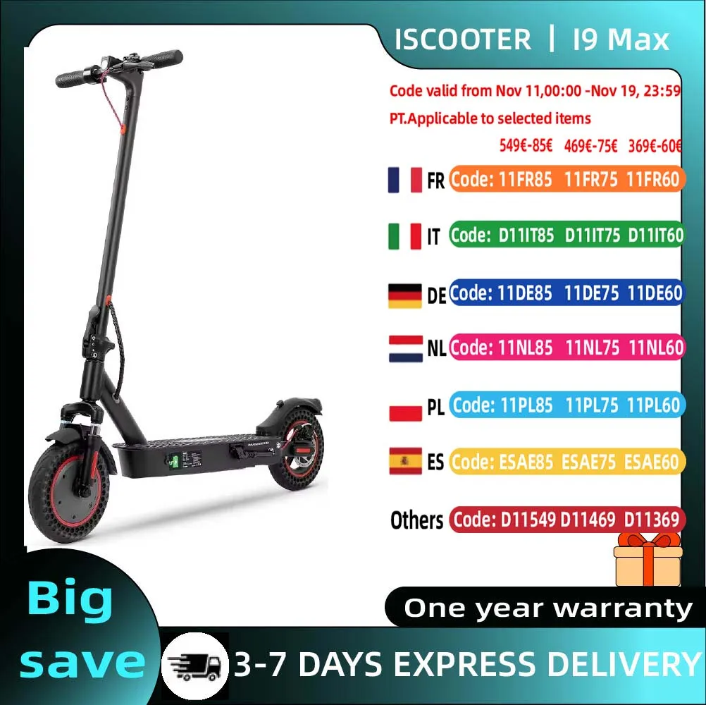 IScooter I9 Max Scooter électrique 500W moteur 36V10AH 10 pouces nid d'abeille pneu él...