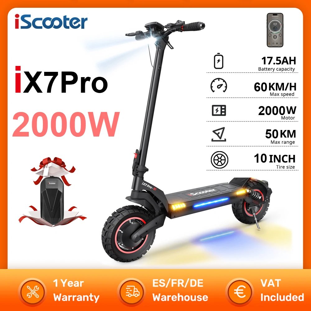 IScooter iX7Pro Scooter électrique 2000W 48V 17.5Ah 10 pouces EScooter 60 KM/H vitesse 50 MIL...