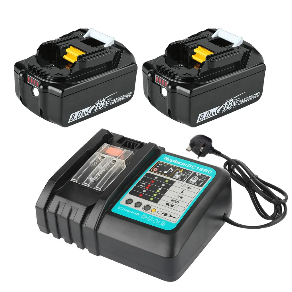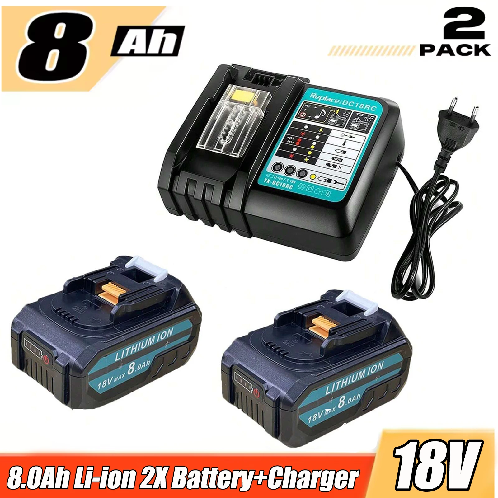 2 batteries Li-ion de remplacement 18V 8.0Ah pour batterie Makita + chargeur DC18RC 14.4V-18V 3,0ah ...