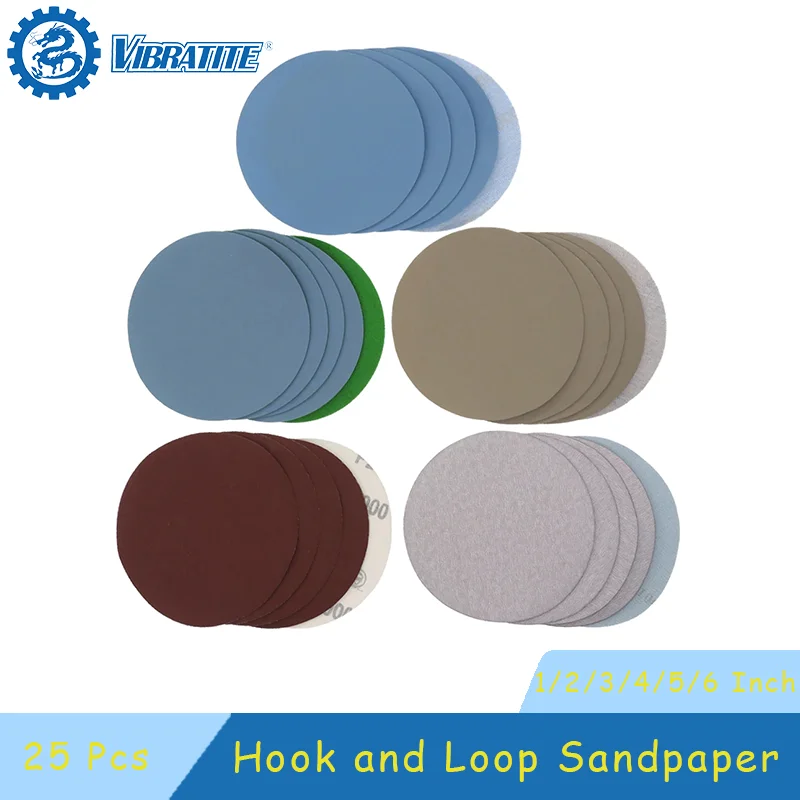 Papier de verre à crochet et boucle de 1/2/3/4/5/6 pouces, 25 pièces assorties, papier...
