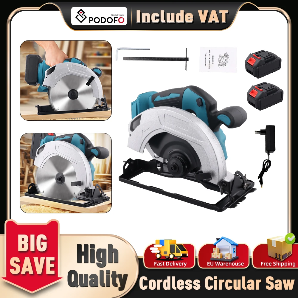 Podofo 2 pièces batterie 7 ''5000 tr/min scie circulaire sans brosse scie circulaire é...