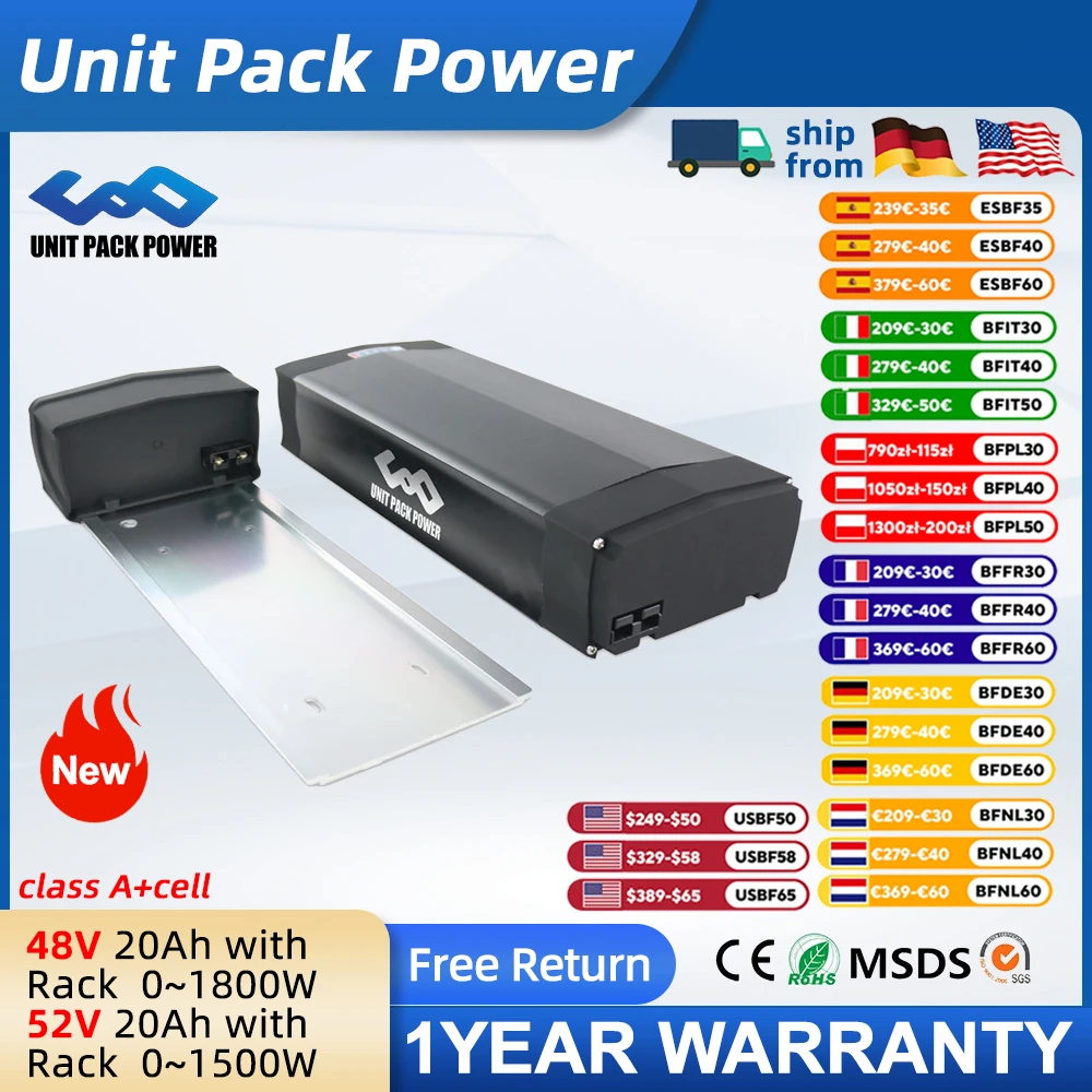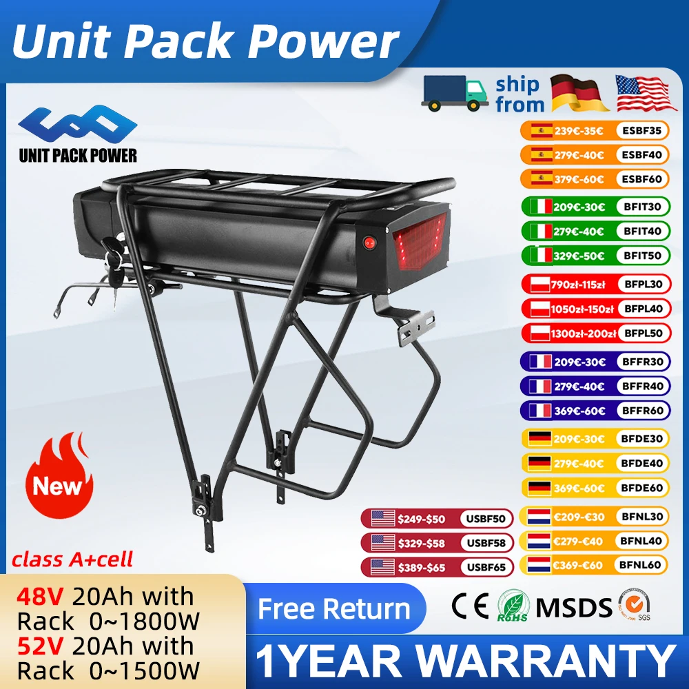 Batterie de vélo électrique 52V 48V 20AH, 18650 cellules, Pack au Lithium avec bagages...