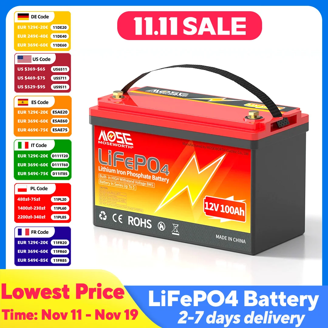 MOSEWORTH 12V 100AH LiFePO4 batterie au Lithium 100A BMS pour solai...