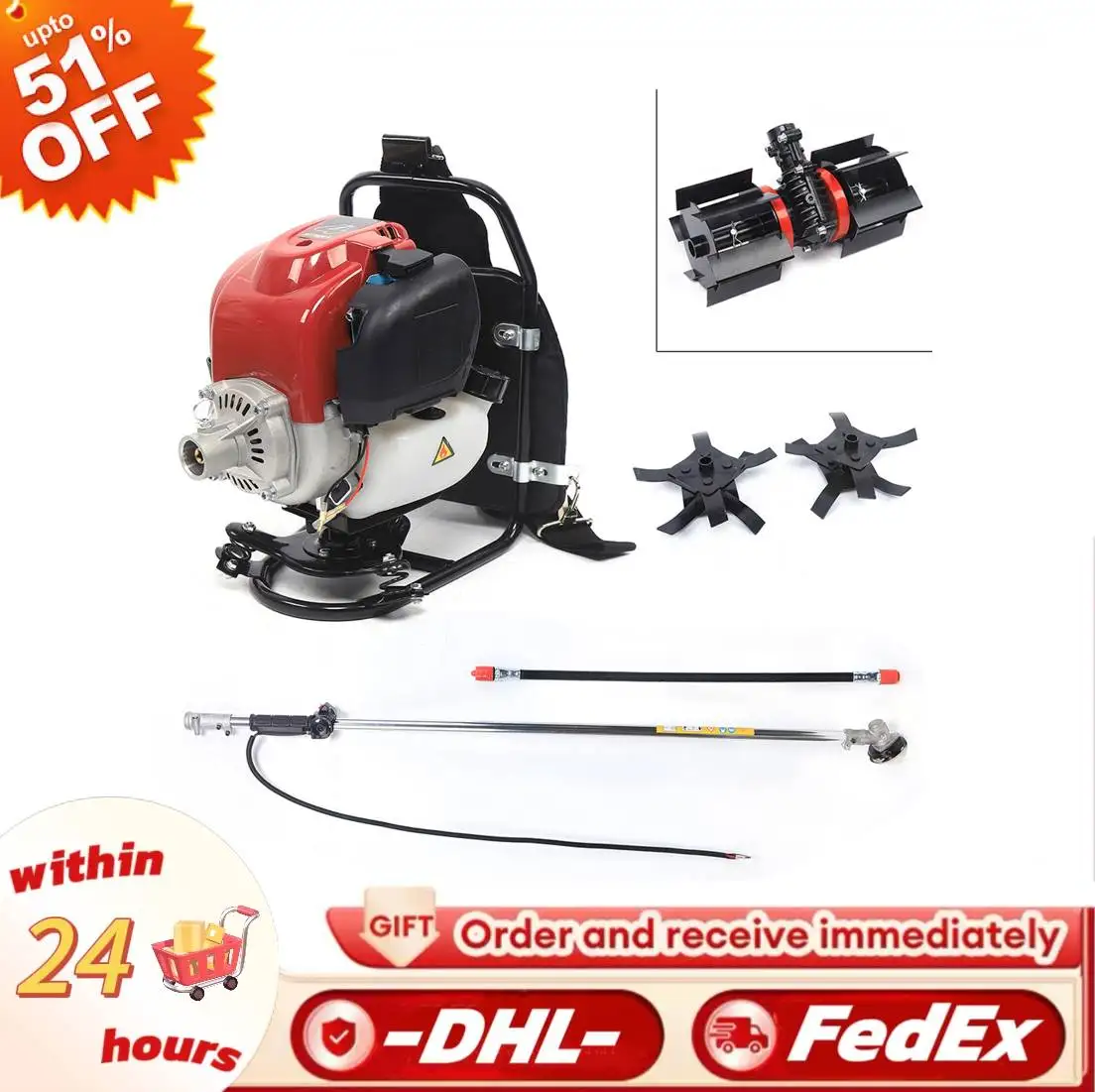 Débroussailleuse à dos 4 temps, motoculteur, taille-haie, cultivateur, tondeuse &agrav...