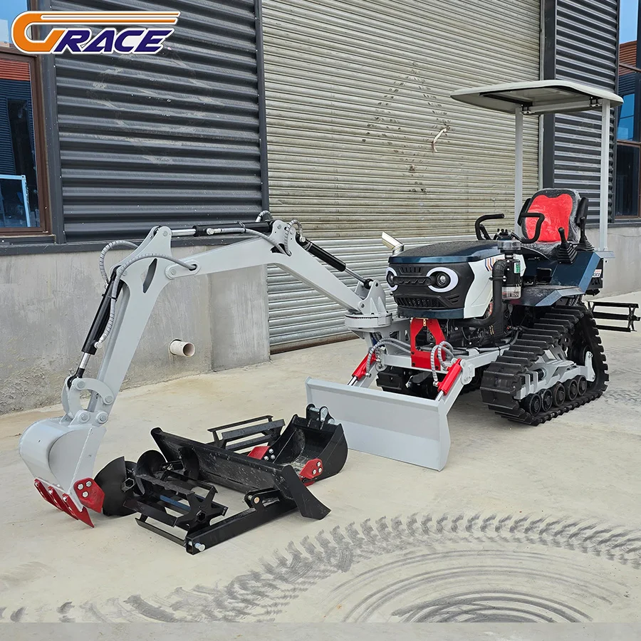 Petits tracteurs agricoles avec pistes en caoutchouc, tracteur sur chenilles, machines agricoles, Mi...