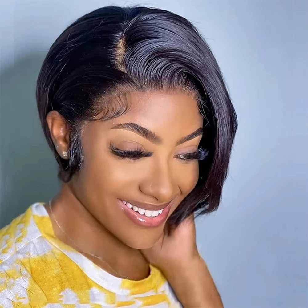 Bon Prix Perruque Cheveux Humains 100% Perruque Lisse Cheveux Humain Perruque BOB Courte Perruque Ra...