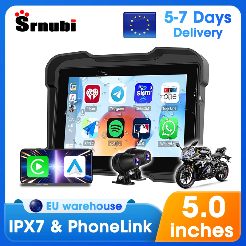 Srnubi 5 pouces Portable numérique Moto tableau de bord sans fil CarPlay écran Android...