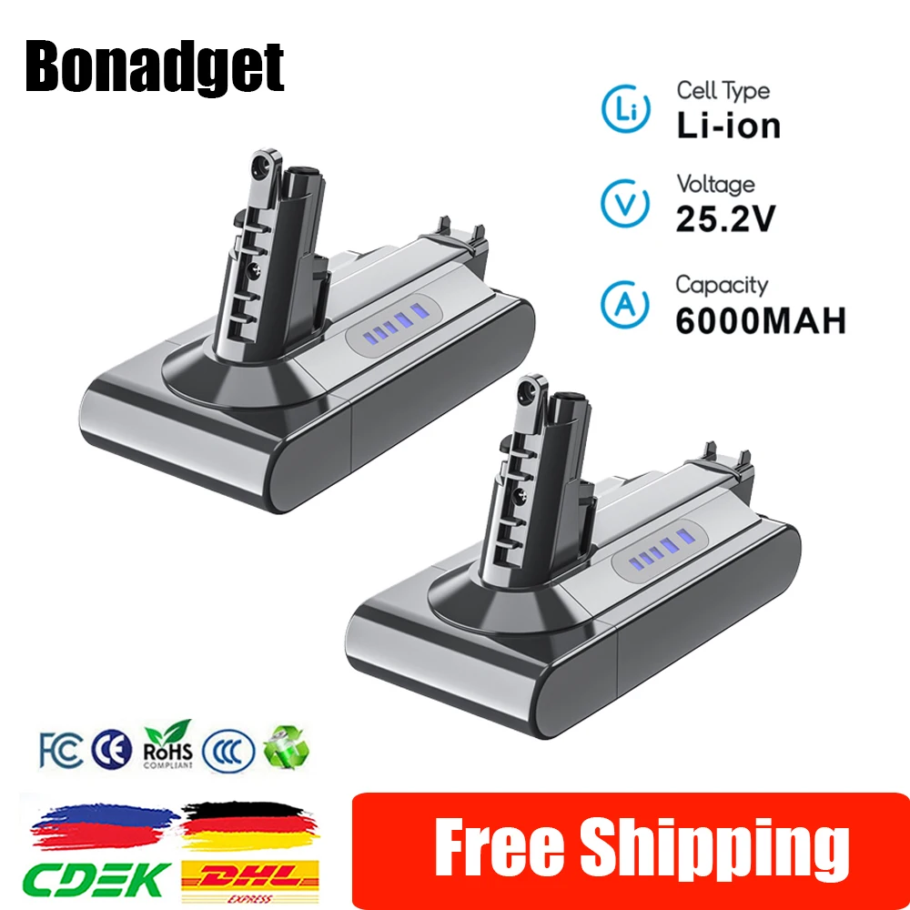 Batterie 21.6V 6.0Ah V6 pour Dyson DC62 58 SV03 V7 batterie pour aspirateur Dyson V8 batterie pour b...