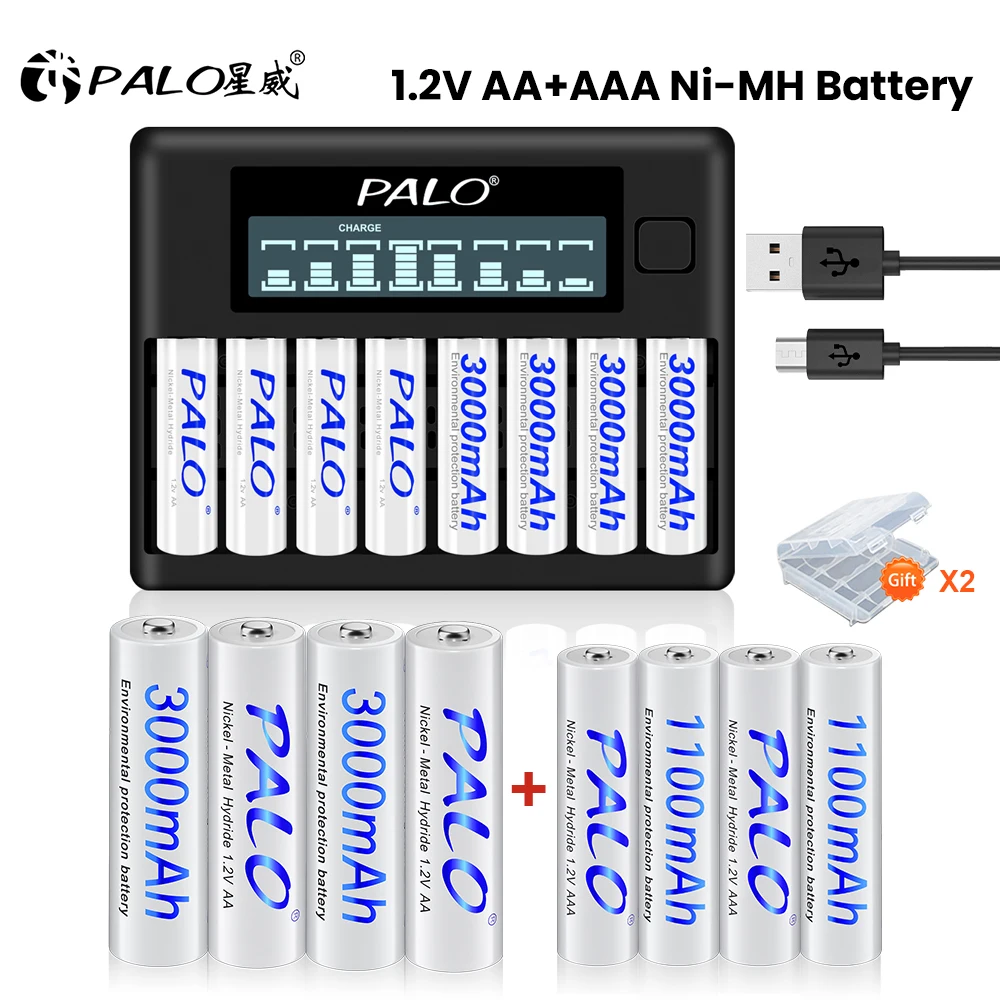 PALO AA AAA Batterie 1,2 V Batterie rechargeable NIMH Batterie 3000...