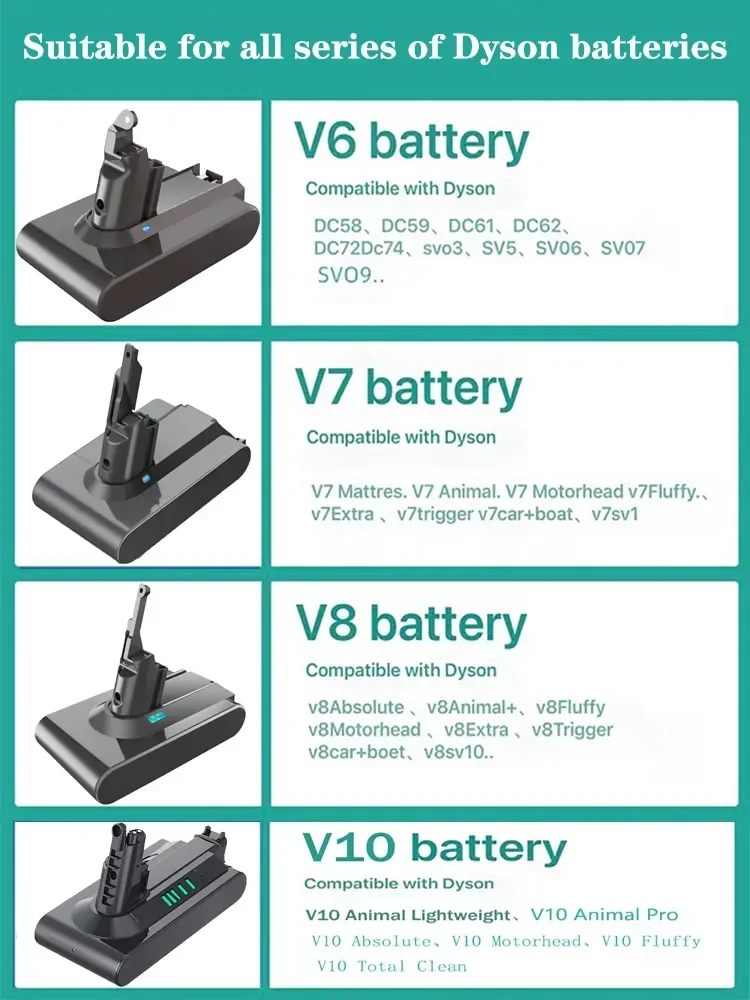 For Dyson V6 V7 V8 V10 batterie Rechargeable SV10 SV11 SV12 DC59 DC...