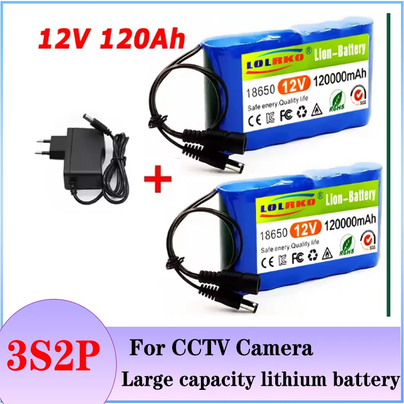 Batterie Lithium-Ion 3S2P 12V 120ah, 18650 12.6V 120000mAh DC, Rechargeable, pour moniteur de cam&ea...