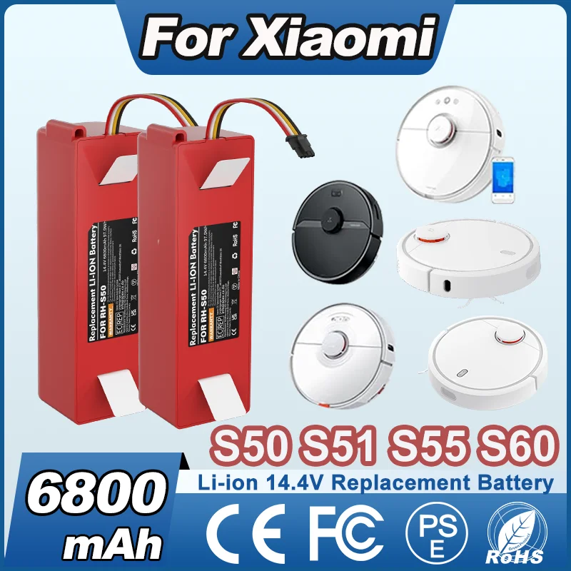 Batterie de remplacement pour aspirateur Li-ion 14.4V 6800mAh, pour Xiaomi S50 S51 S52 S55 S60 S65 S...