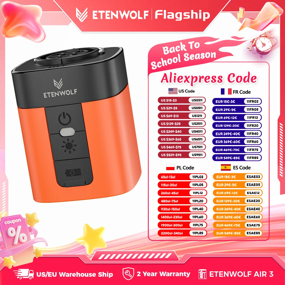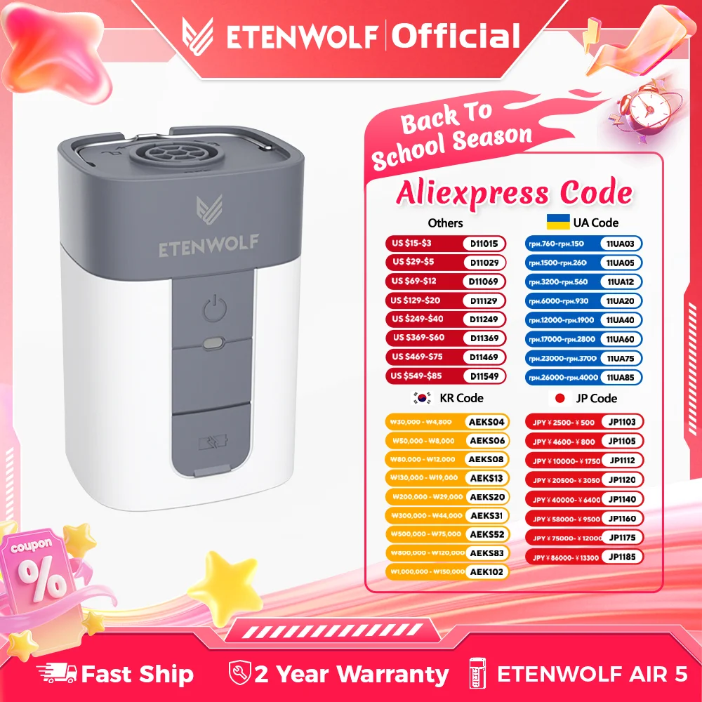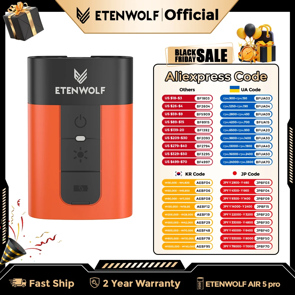 Nouveau ETENWOLF AIR 5 PRO pompe à Air Portable 10400 mAh go...