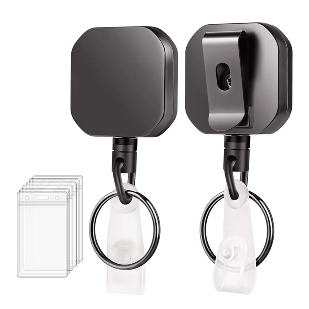 Porte-badge d'identification de bobine de badge rétractable carré robuste avec porte-c...