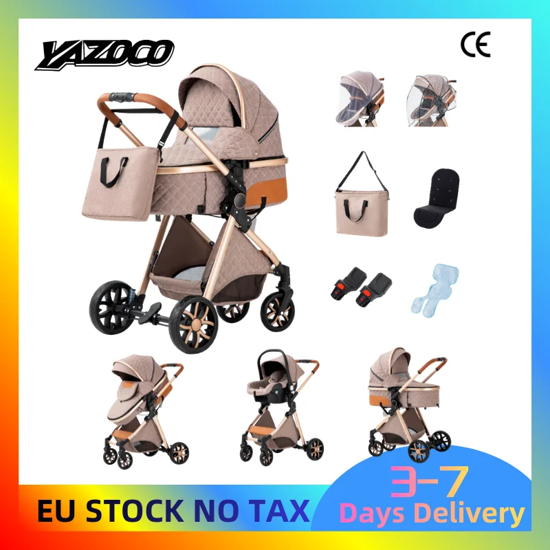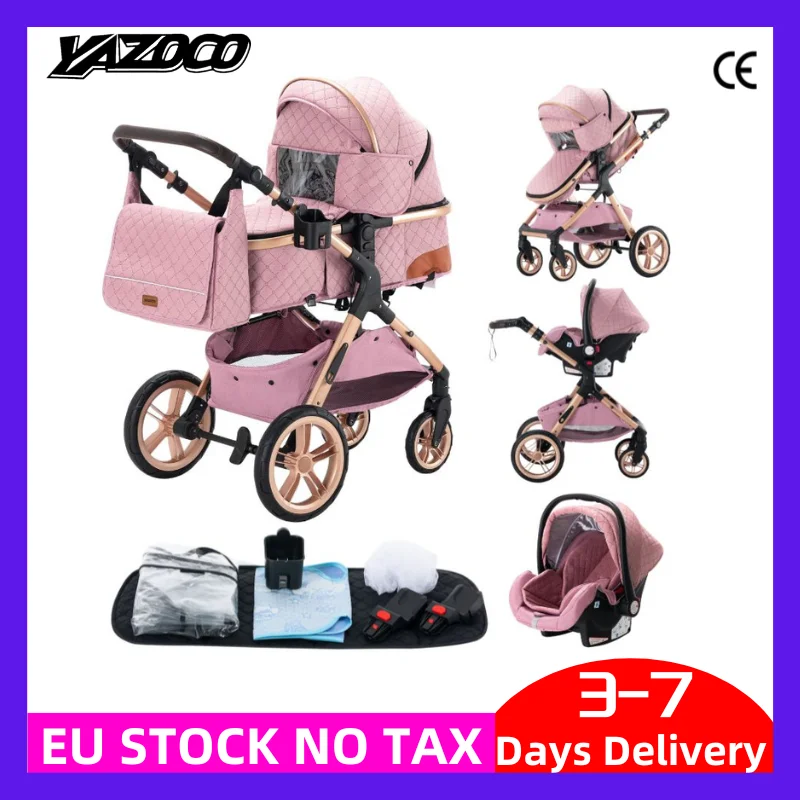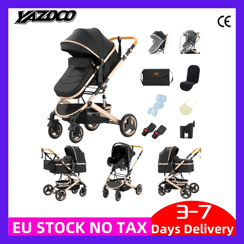 Poussette 3 en 1 pour bébé, poussette pliable de luxe...