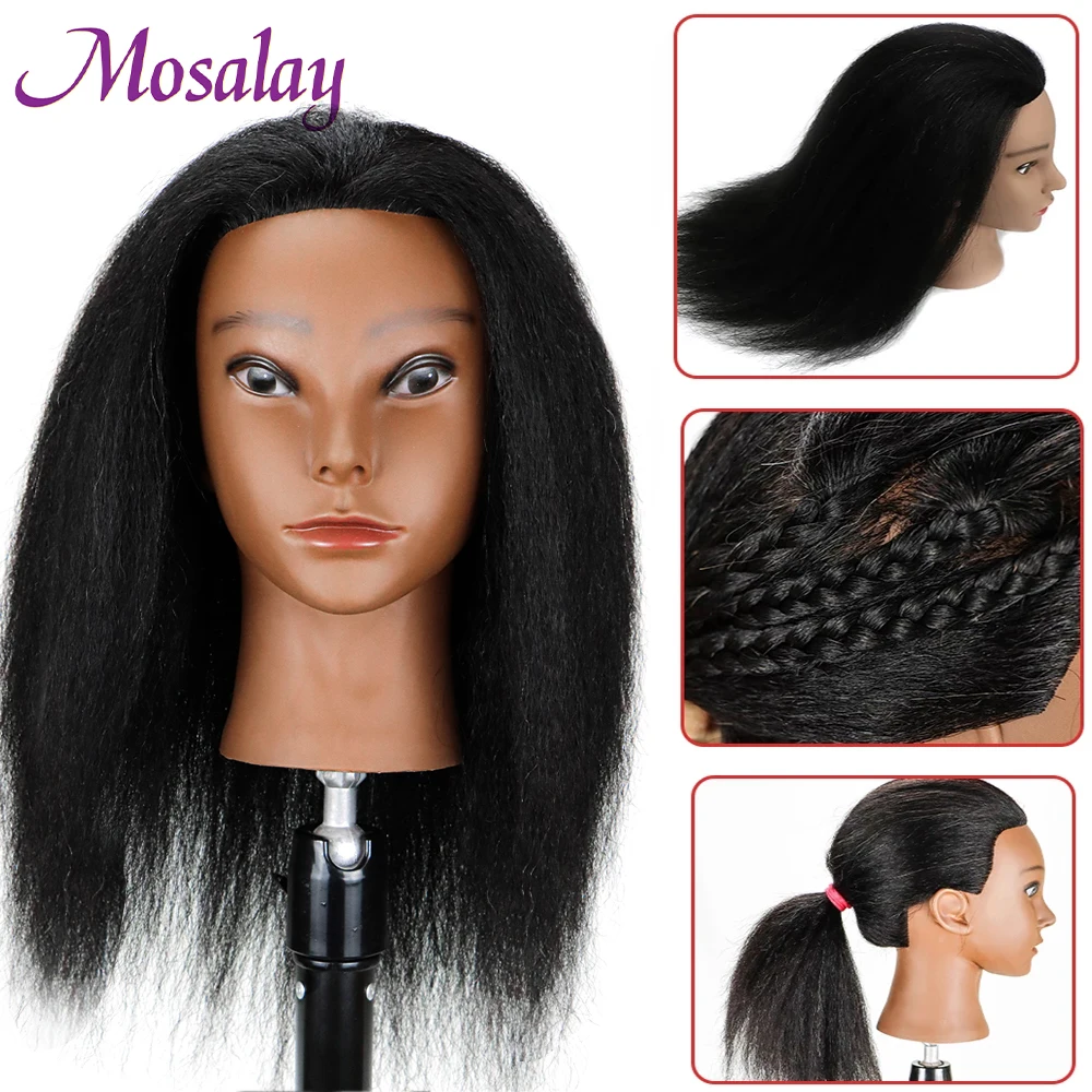 Tête de Mannequin africaine pour femmes, avec 100% de vrais cheveux, pour coiffer, tressage, f...