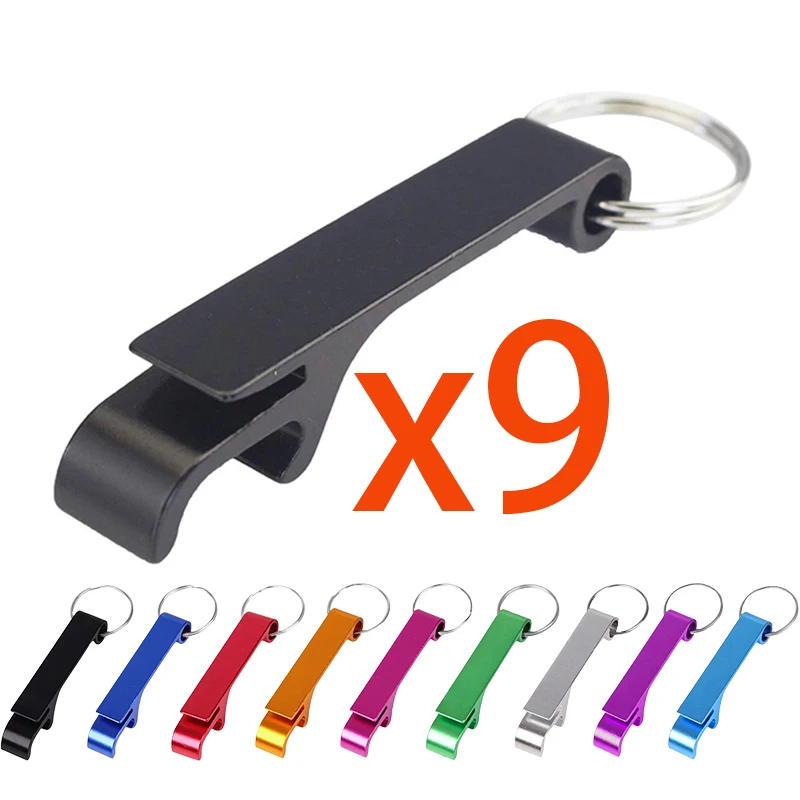 9 pièces ouvre-bouteille en métal fendu porte-clés chaîne porte-clé...