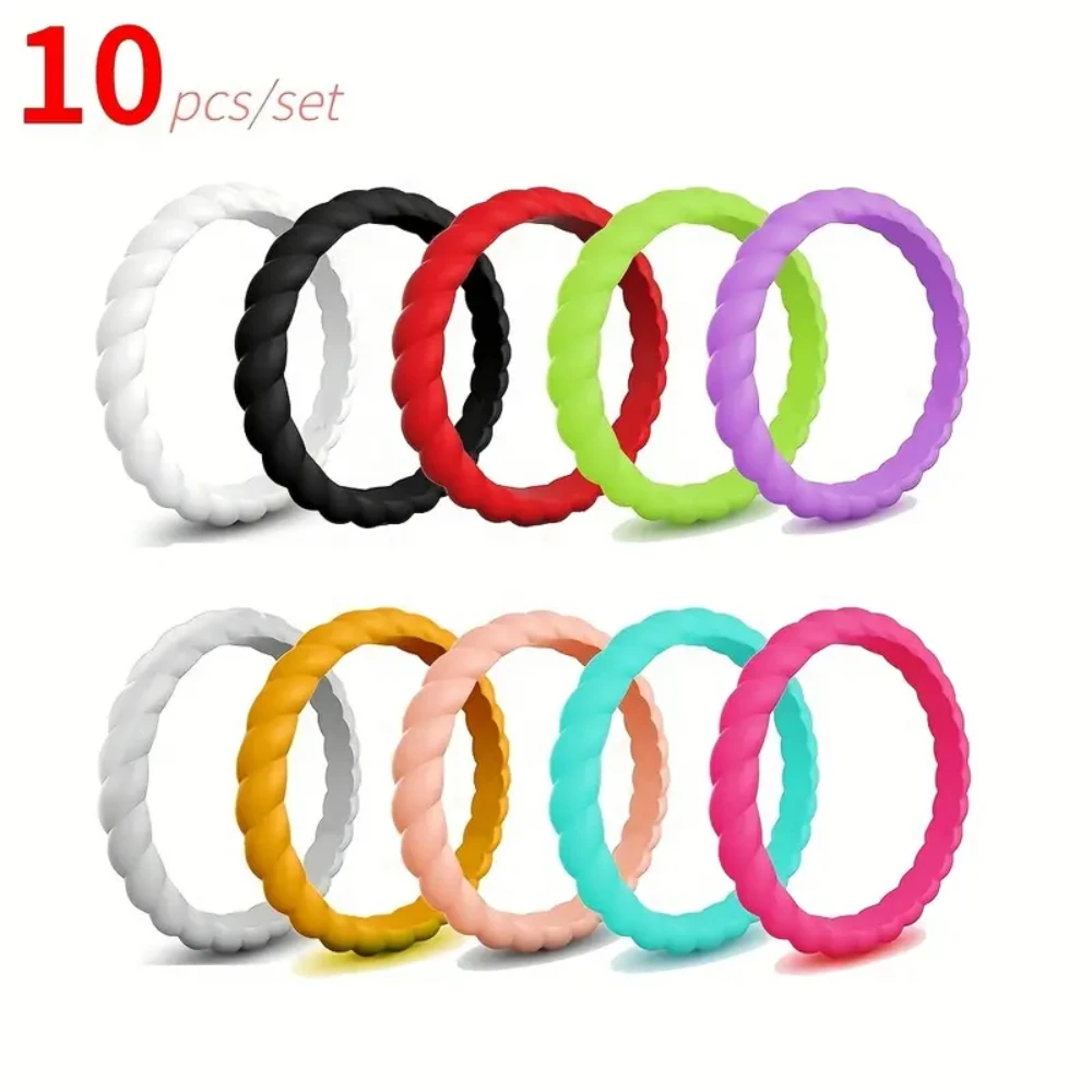 Ensemble d'anneaux sportifs torsadés en Silicone, 10 pièces/ensemble, couleurs multi-b...