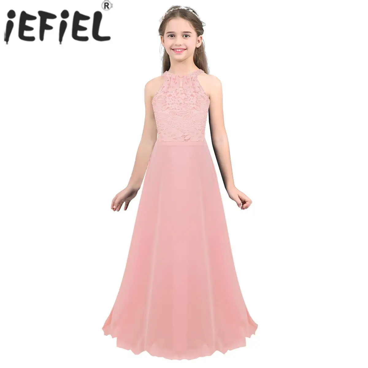 Robe de mariée princesse en mousseline de soie pour enfants, robes longues, licou d'ét...