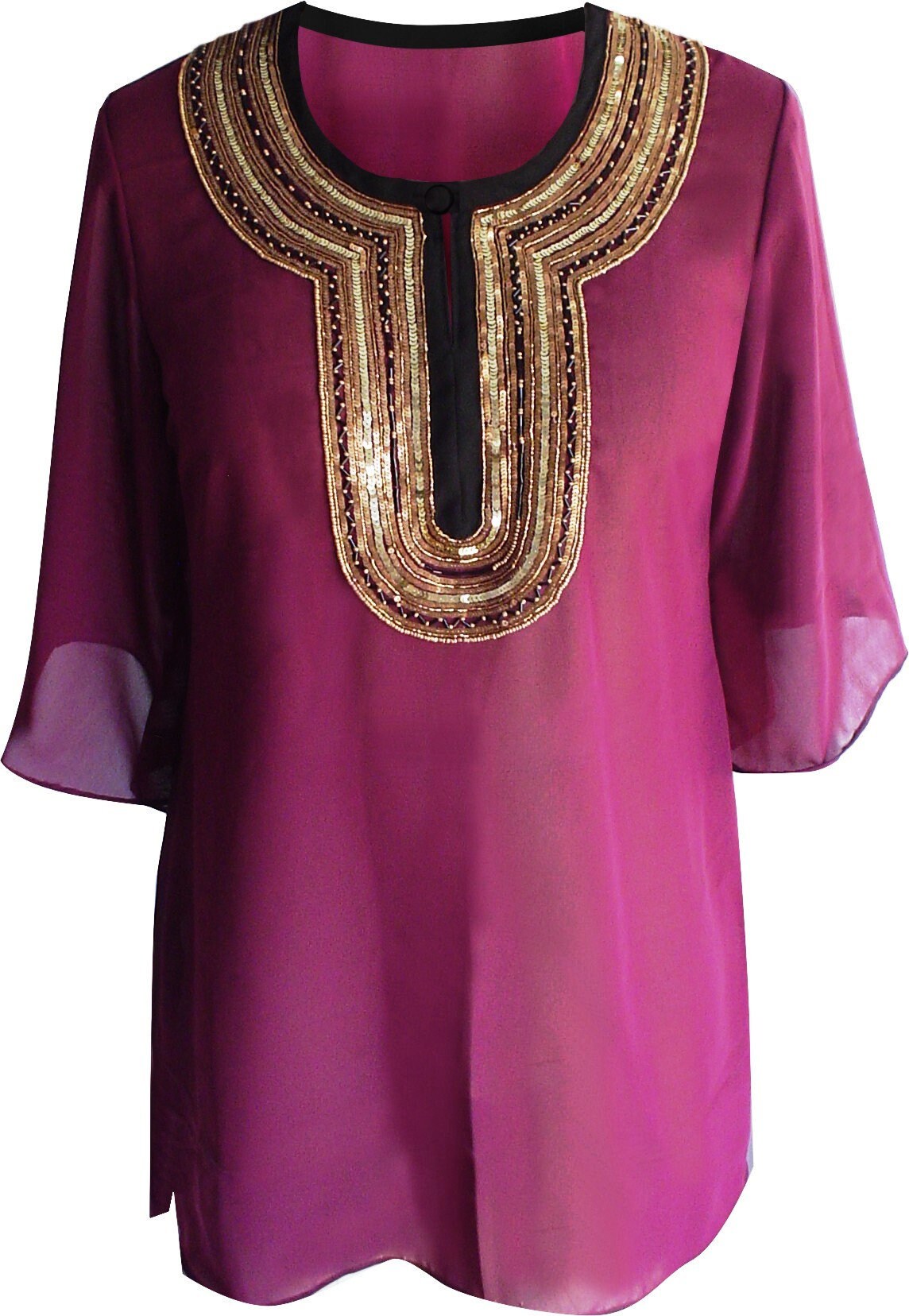 Tunique Deep Purple brodée à la main avec des paillettes et des perles Tunique Top, Pl...