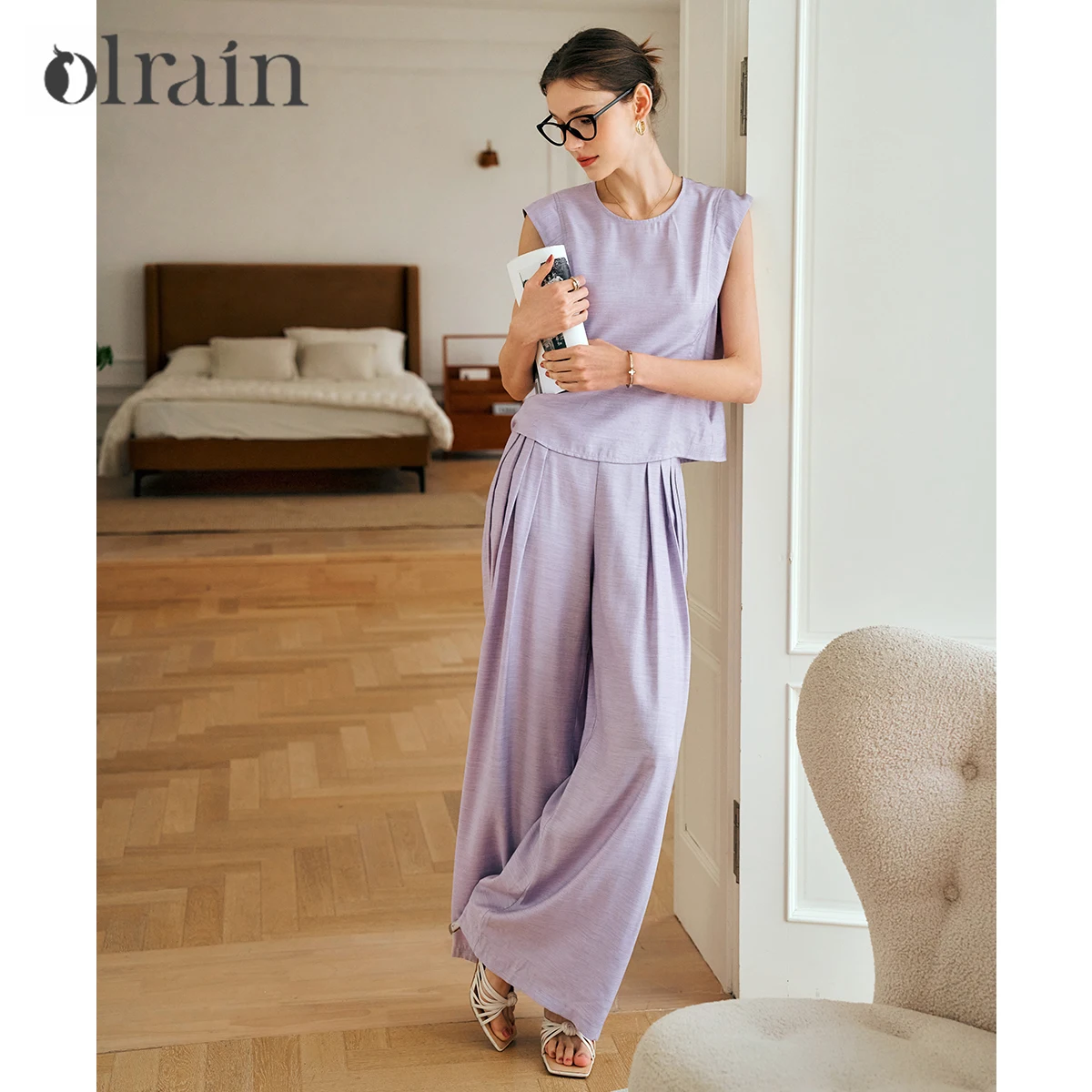 Ensemble pantalon femme OLrain Hyacinth Purple Printemps 2026 – Haut court sans manches et pan...